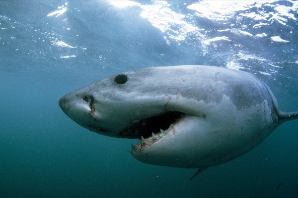 Federal and State Fish and Game officials are working to identify the type of shark, which was described as being 14 to 20 feet in length.
